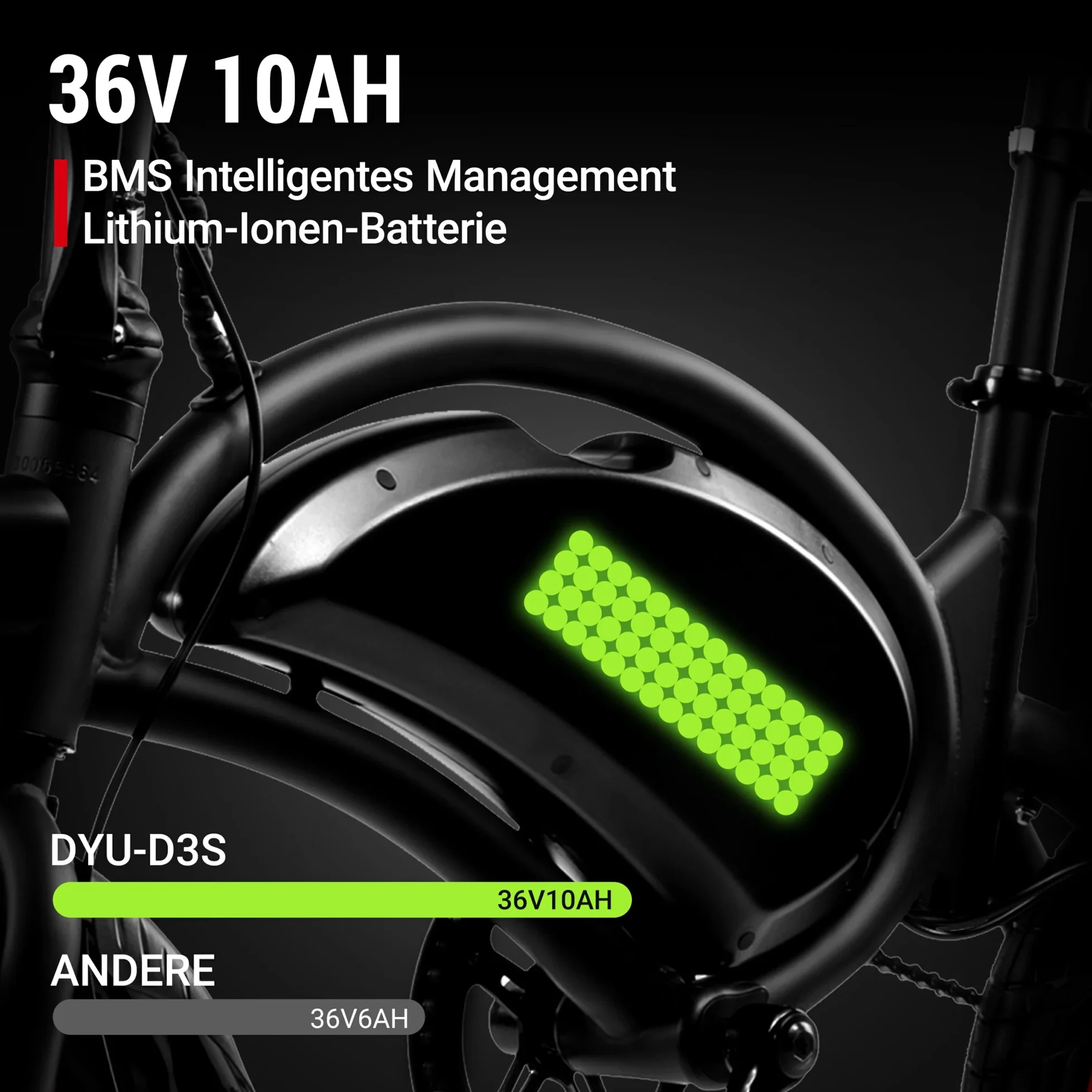 | Batterie | 36 V, 10 Ah |